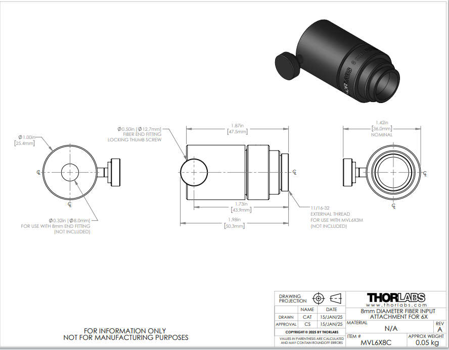 Thorlabs索雷博 MVL6X8C 光纤输入配件