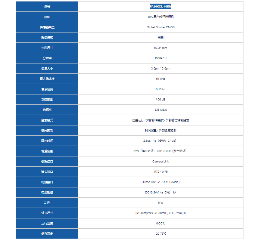 I-Tek埃科 PA16KCL-40KM 线扫描相机