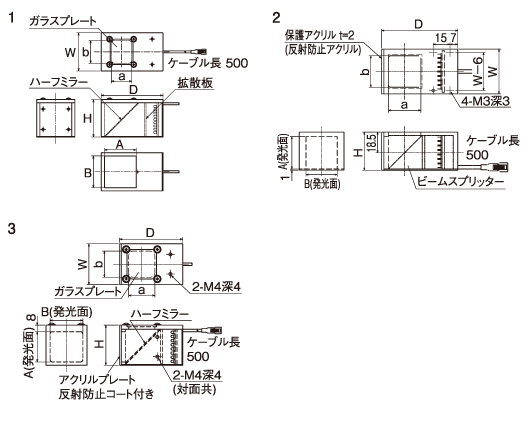 ※*印付きの製品はストレート同軸仕様(ビームスプリッター型)です。 ※□为发光色。。(B=青、G=緑、DW=白) |