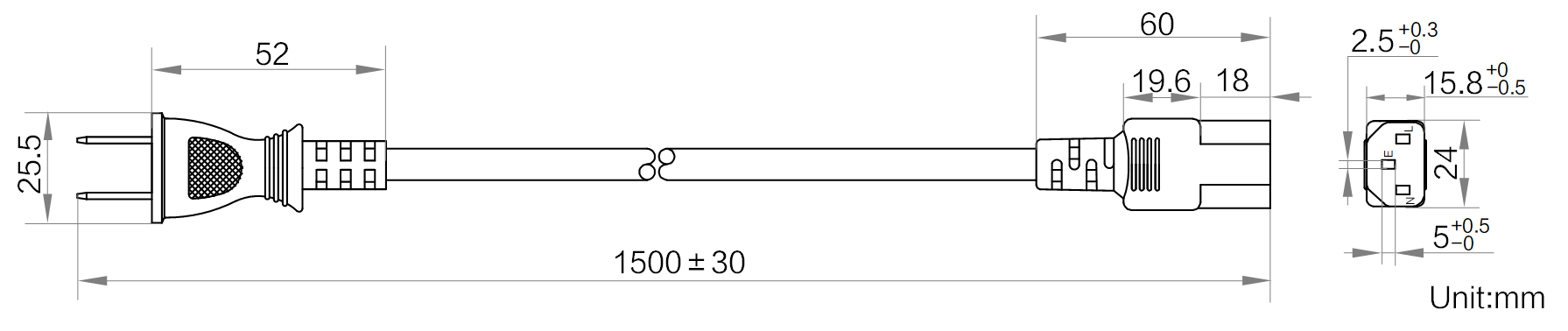 型号 | 型号 | 交流电源线_日标_两插_C13_1.5米 |