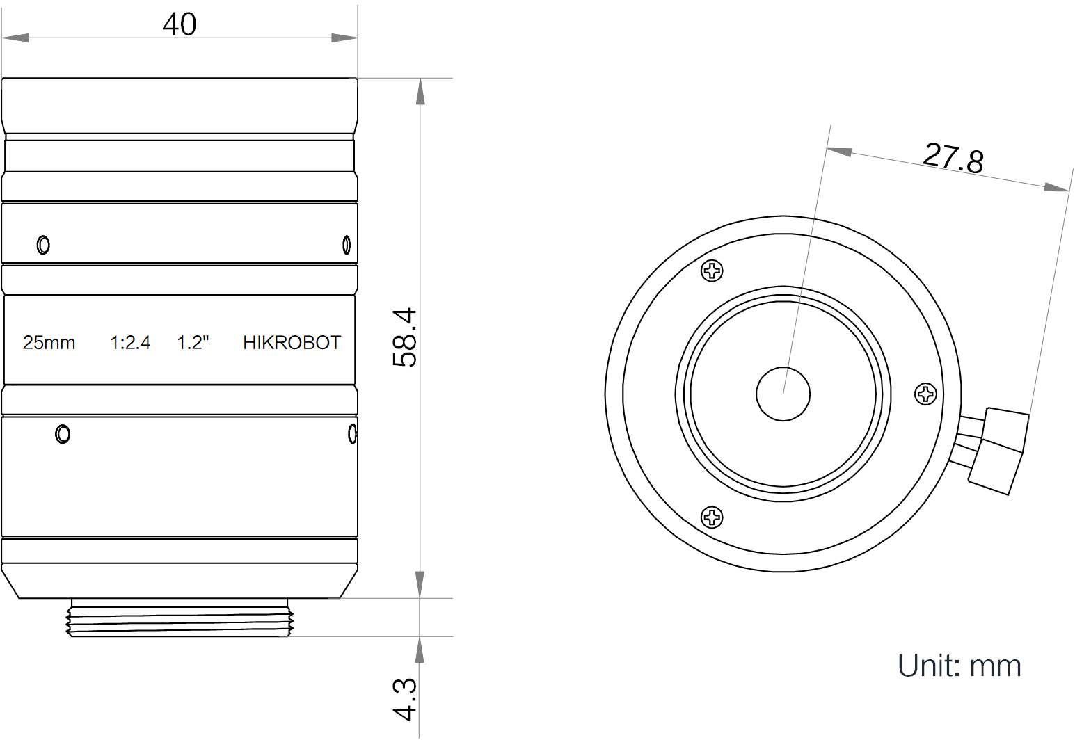 名称 | 25mm,F2.4,1.2",2500万分辨率,C接口镜头 |