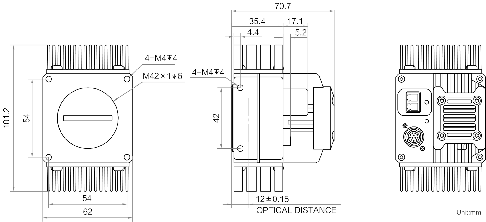 | 结构 | 镜头接口 | M42*1,法兰后焦12 mm;可通过转接环转接至F口镜头 |
