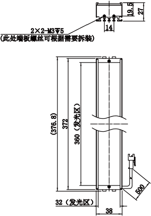 外形尺寸 | 372 mm × 38 mm × 27 mm |