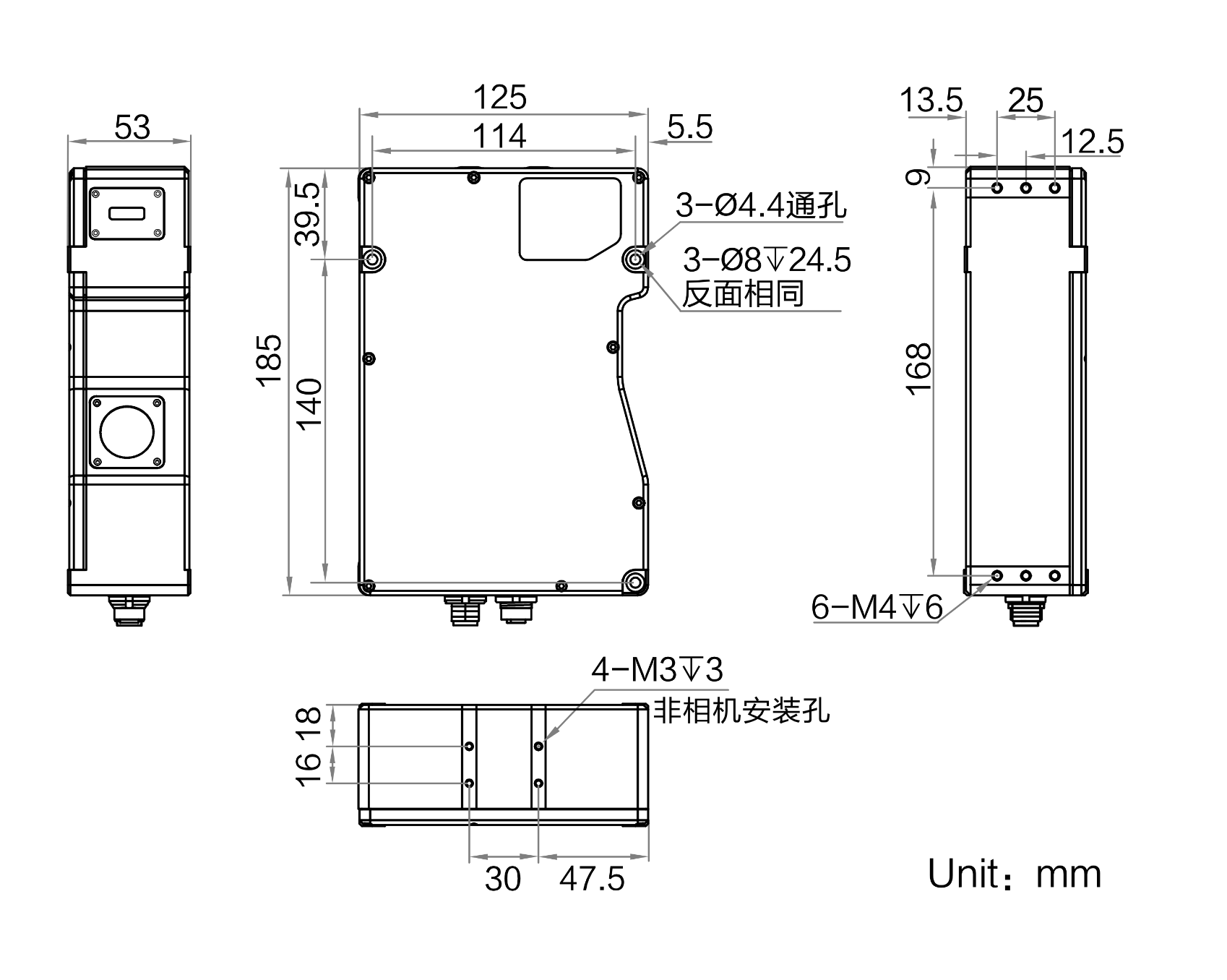 结构 | 外形尺寸 | 185 mm×125 mm×53 mm |