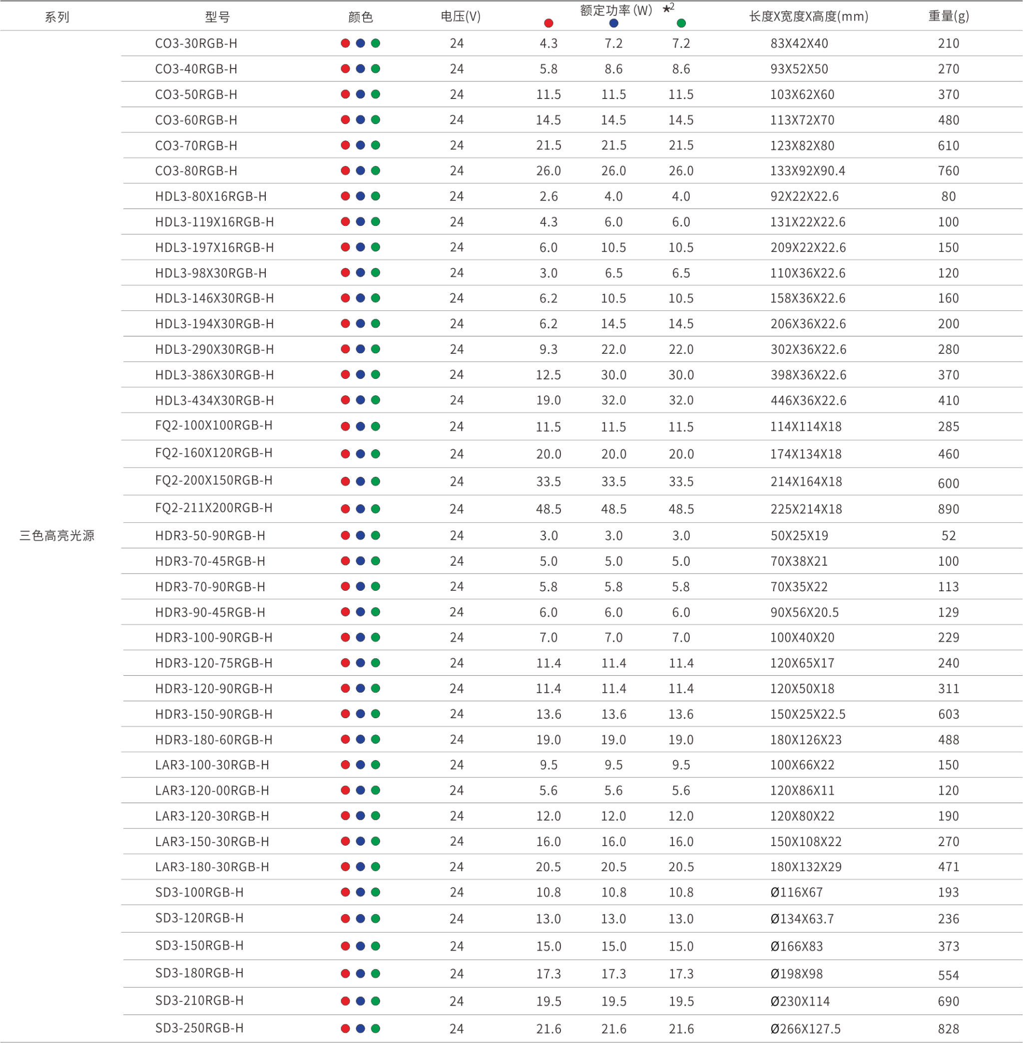 *2 混色可能会导致光源功率增大,建议单独点亮,具体使用请联系对应业务或技术支持