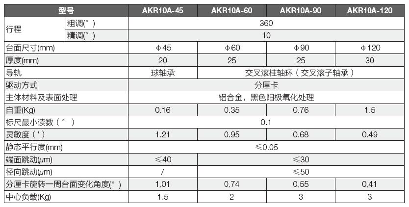 AKR 系列是卓立汉光开发的全新高精密手动旋转滑台。该系列旋转滑台具有大角度粗调和小角度精密调整两种功能。采用分厘卡驱动,灵敏度高。交叉滚柱轴环保证了台面在旋转时,有很好的运动特性,端跳、径跳等关键指标可达国际同类产品水平。尺寸较多,可以根据需要灵活选择,AKR 系列产品适合于对于手动角度调整有较高要求的领域。