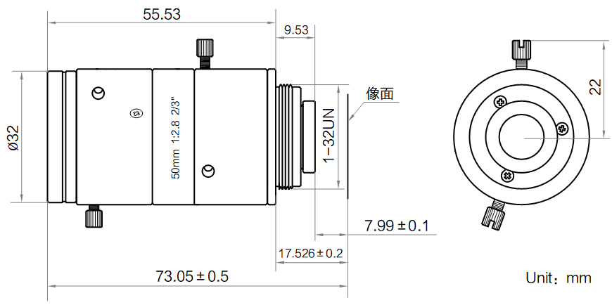 像面尺寸 | Φ11.2 mm(2/3'') |