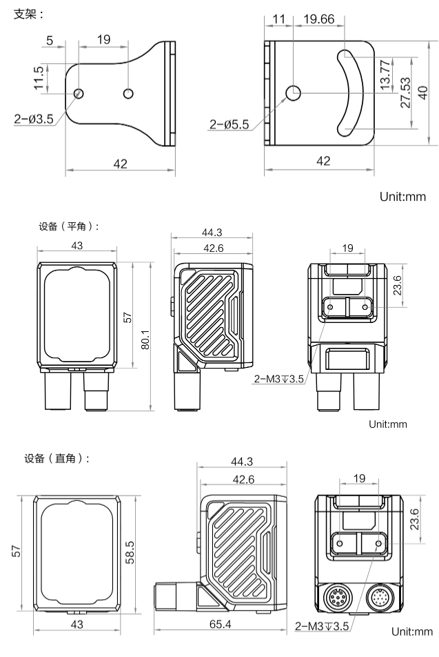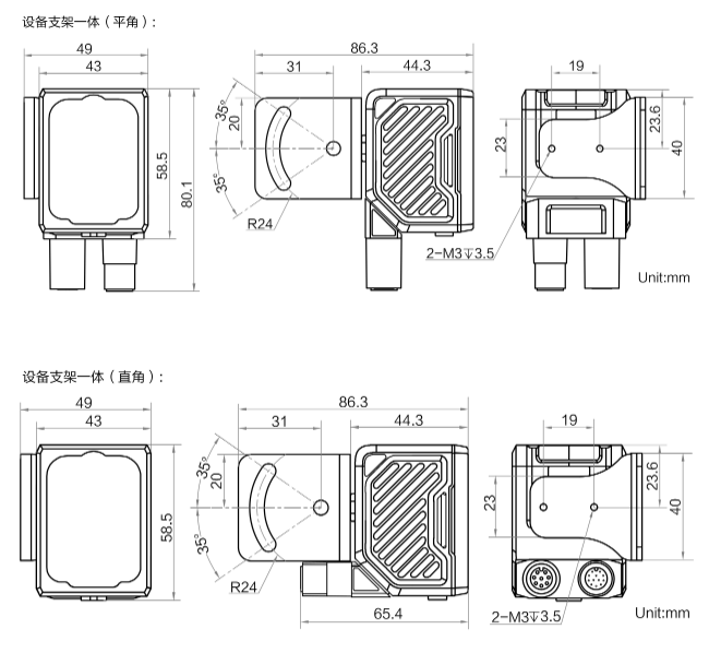 外形尺寸 | 平角:80.1 mm × 43 mm × 44.3 mm 直角:58.5 mm × 43 mm × 65.4 mm |
