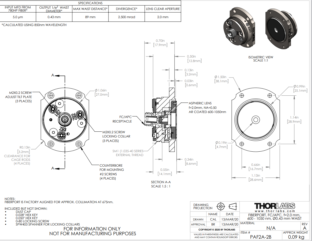 | PAF2A-2B | 2.0 mm | 5.0 µm | 0.43 mm | 89 mm | 2.500 mrad | 2.0 mm | 0.50 | 600 - 1050 nm | ECO-550 | 0.70" (17.9 mm) |