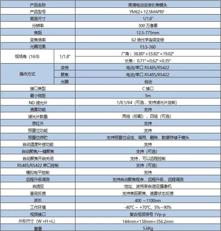 山田YAMAKO YM62×12.5MAPRF 高清电动变倍镜头