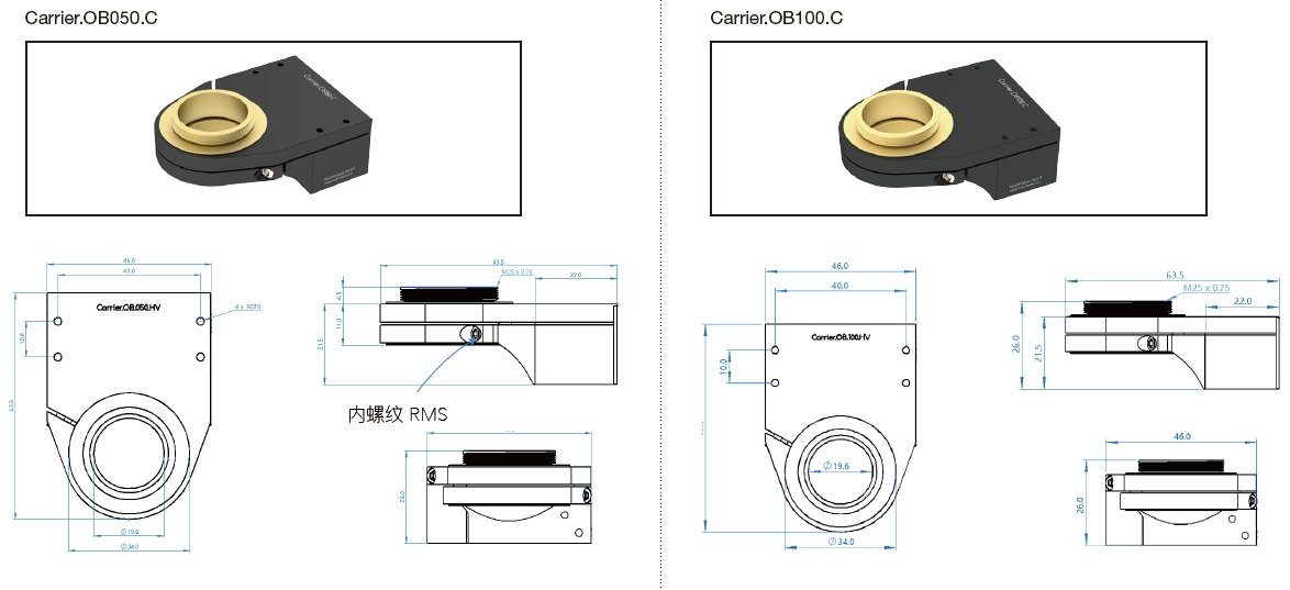 亚纳米物镜自动对焦台Carrier.OBHLxx.C.HV系列尺寸图