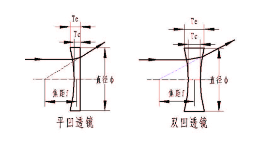 凹透镜按形状分平凹透镜与双凹透镜,按材料分为K9 玻璃(BK7) 与石英。