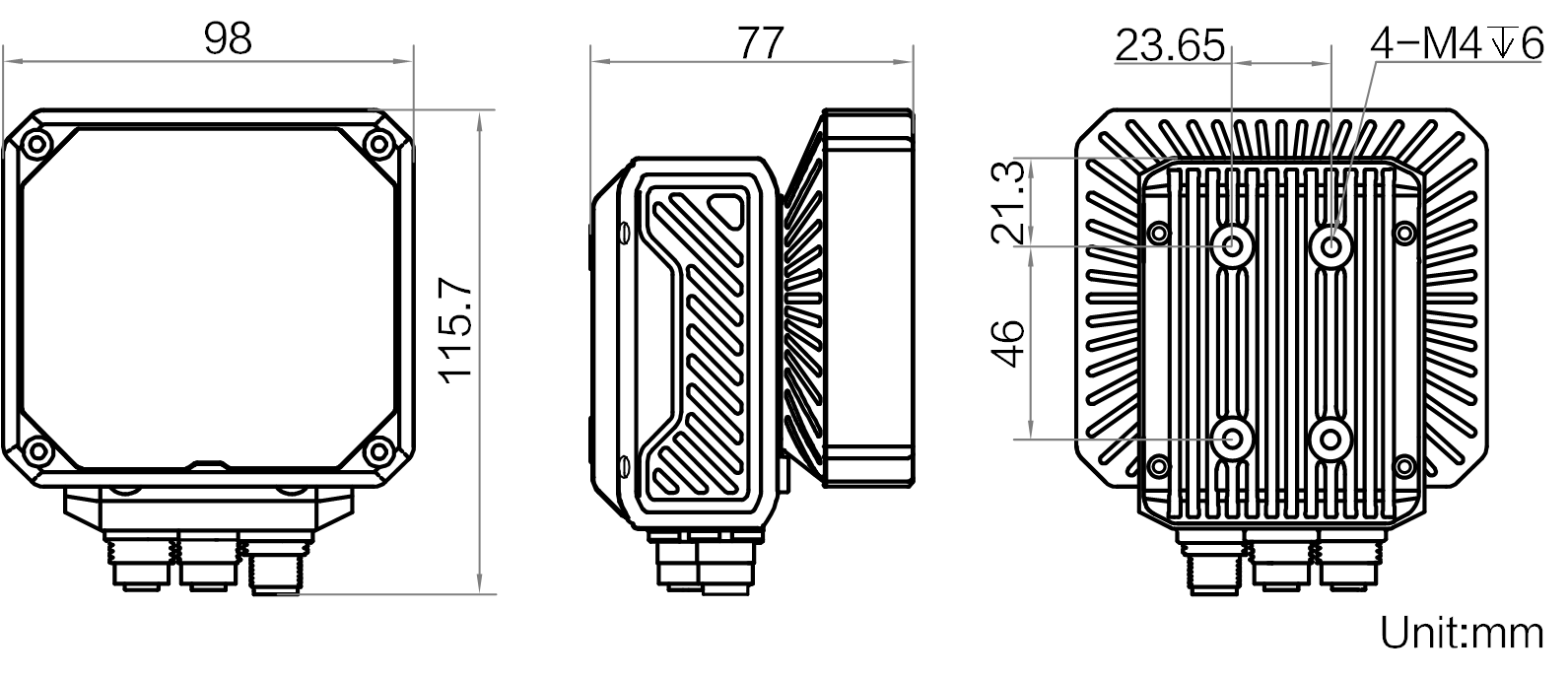 | 数字I/O | 17-pin M12接口,支持2路光耦隔离输入(Line 0/1)、2路光耦隔离输出(Line 4/5)、2路非隔离可配置输入输出(line 2/3)、1路RS-232、1路光源输出(最大支持30 W) |