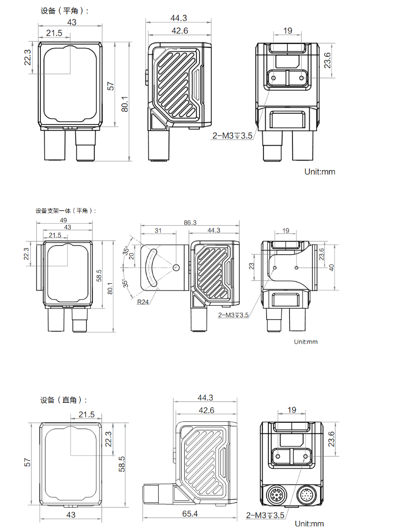外形尺寸 | 平角:80.1 mm × 43 mm × 44.3 mm 直角:58.5 mm × 43 mm × 65.4 mm |