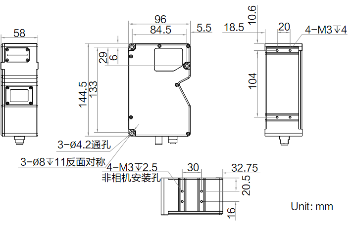 结构 | 外形尺寸 | 144.5 mm × 96 mm × 58 mm |