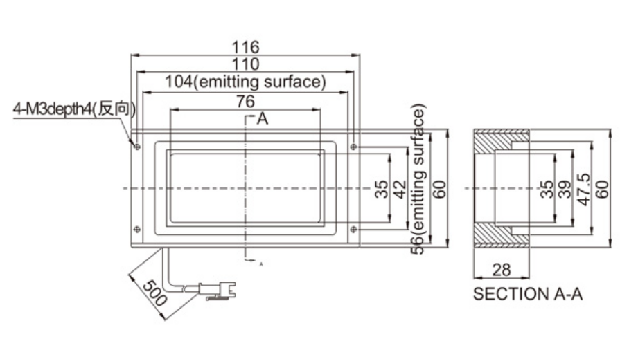 使用寿命 | 在本公司指定使用条件下,红光5万小时,白光3万小时,亮度降低到出厂值的50% |