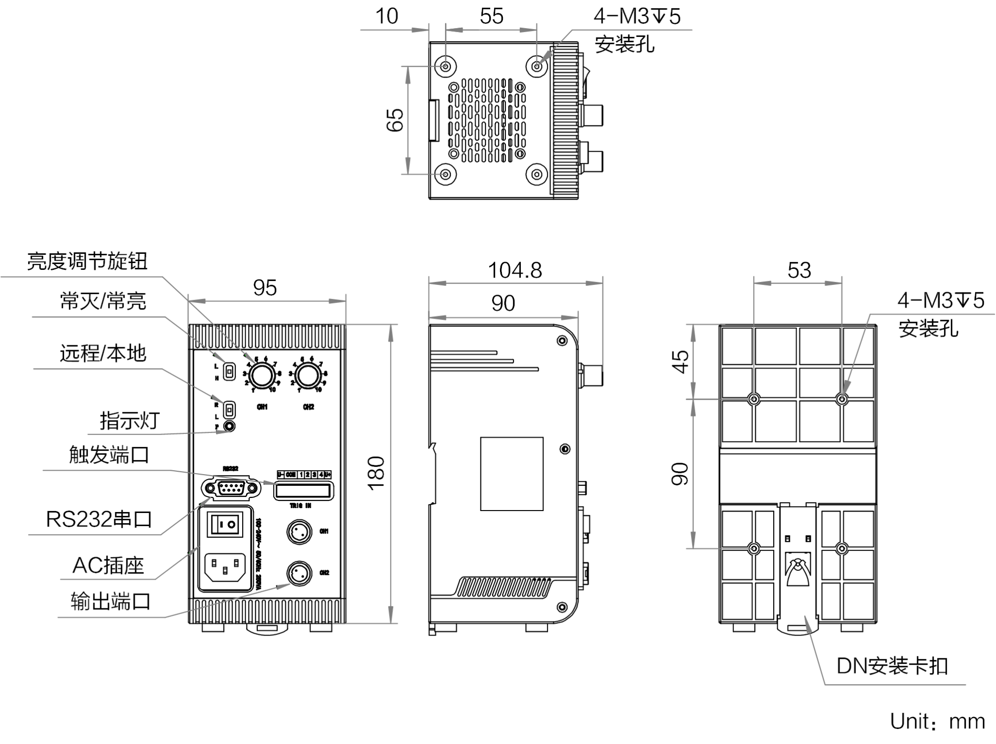 名称 | 模拟恒压光源控制器,200W,2通道,12M-2B接口 |