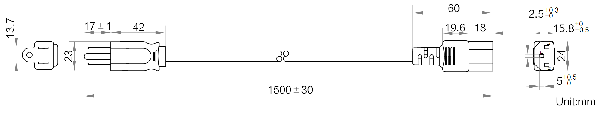 型号 | 型号 | 交流电源线_美标_三插_C13_1.5米 |