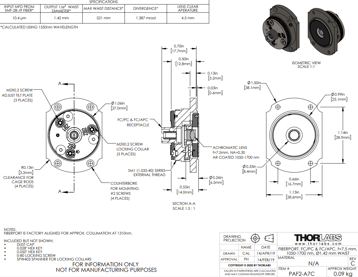 | PAF2-A7C | 7.5 mm | 10.4 µm | 1.42 mm | 521 mm | 1.387 mrad |
