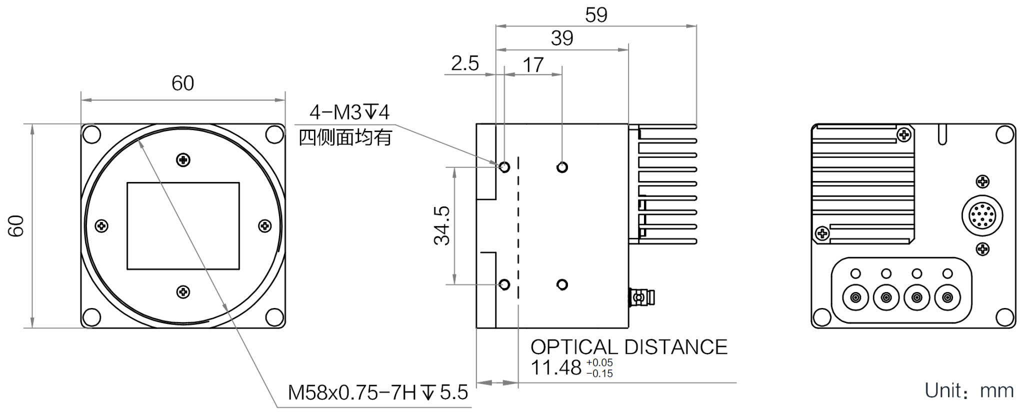 结构 | 镜头接口 | M58*0.75,法兰后焦11.48 mm |