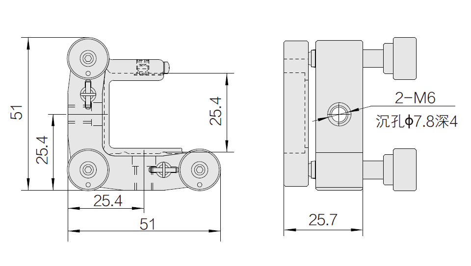 固定螺纹 | M4 | M4 | M6或M4沉头 | M6或M4沉头 |