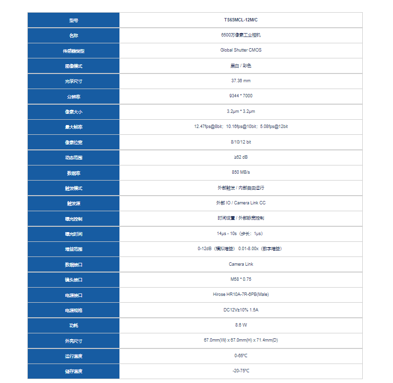 I-Tek埃科 TS65MCL-12M/C 大幅面扫描相机