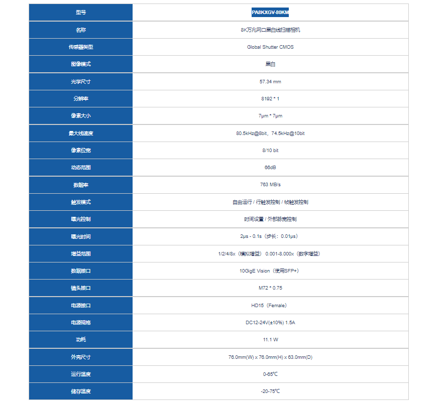I-Tek埃科 PA8KXGV-80KM 线扫描相机