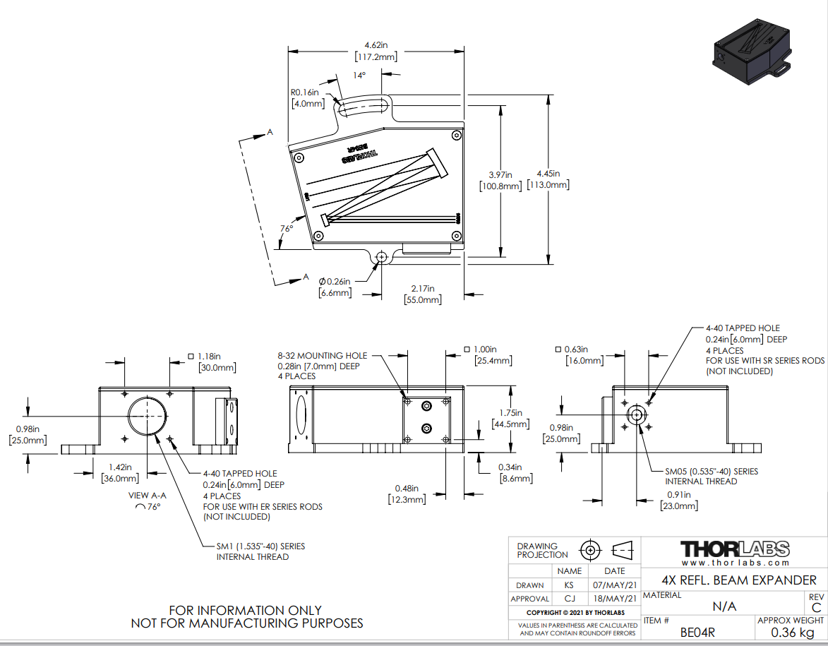 Thorlabs索雷博 BE04R 反射型光束扩束器