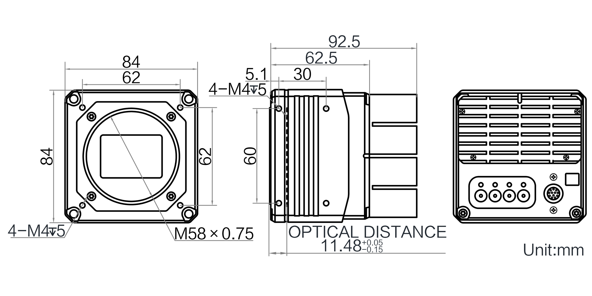 | 结构 | 镜头接口 | M58*0.75,法兰后焦11.48 mm |