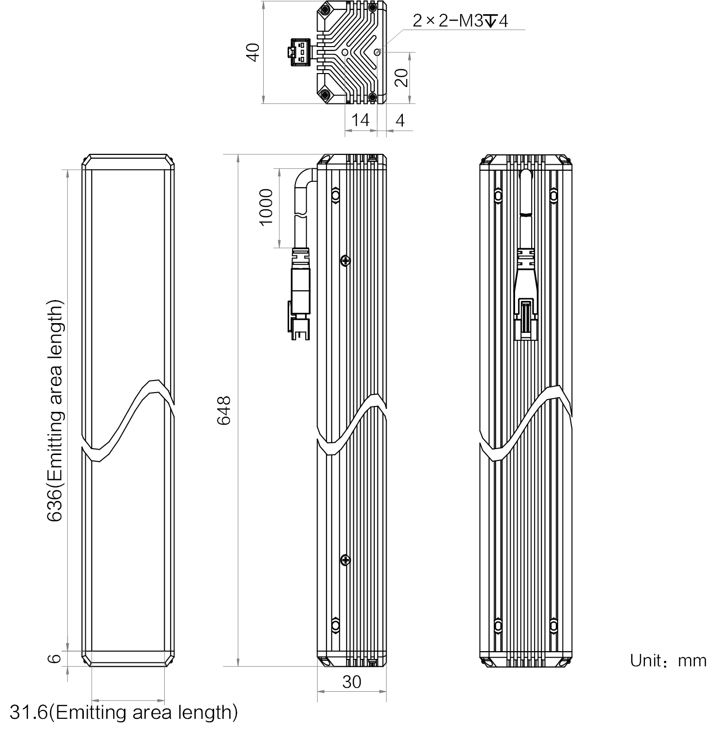 发光区尺寸 | 636 mm × 31.6 mm |