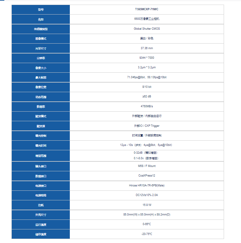 I-Tek埃科 TS65MCXP-71M/C 高速面扫描相机