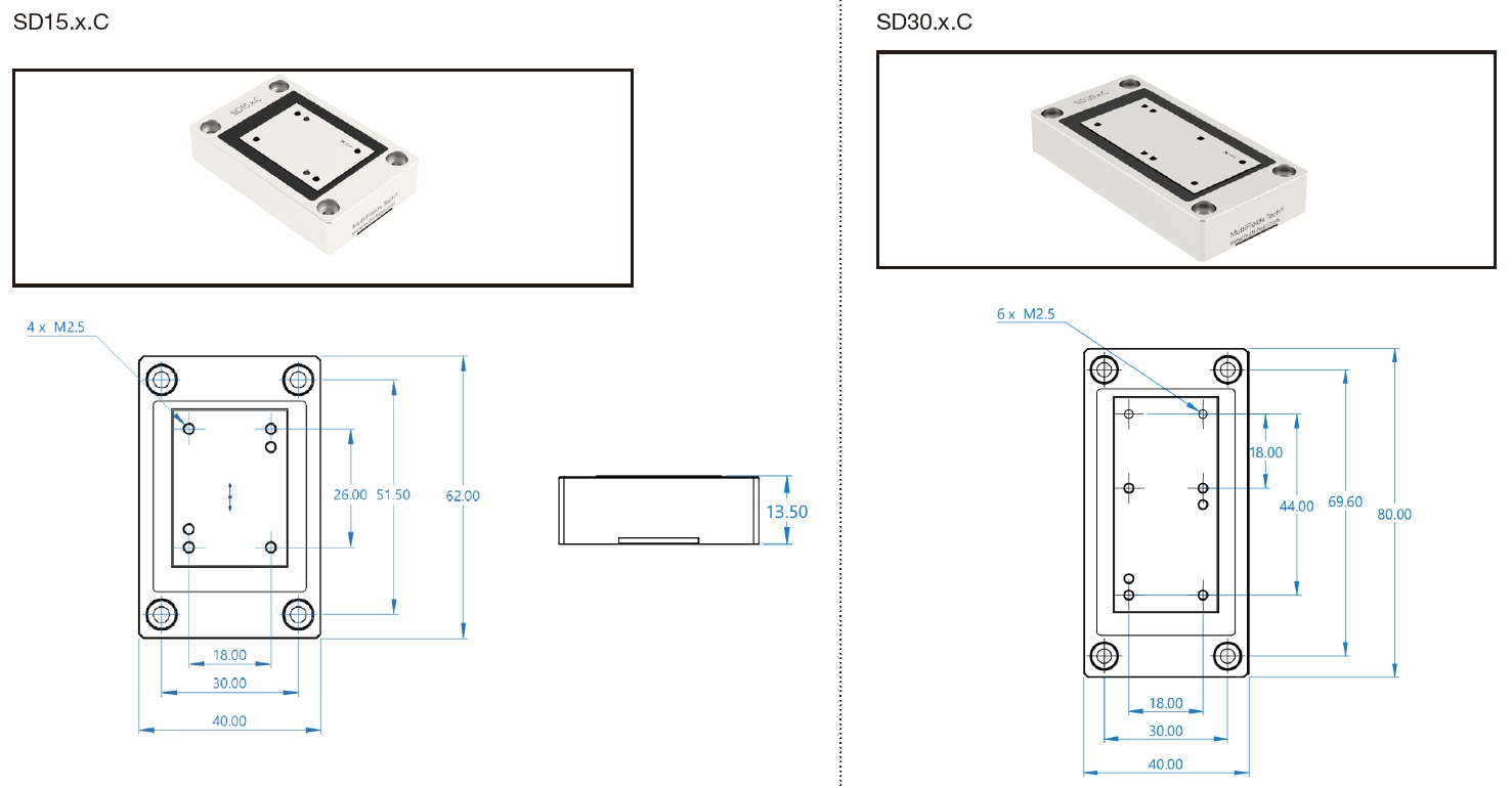 底面尺寸×高度(mm) | 62×40×13.5 | 80×40×13.5 |