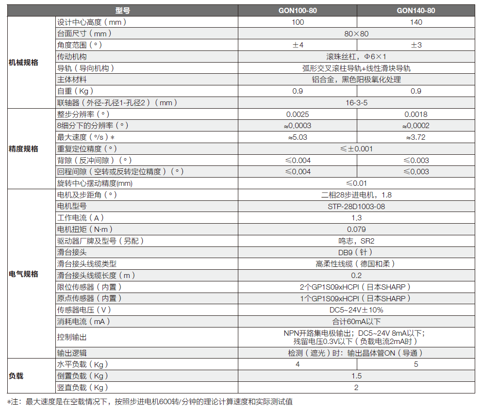 GON 系列电动摆动滑台是卓立汉光为解决小尺寸、高重复使用频率等情况专门设计的精密型电动摆动滑台。该系列产品主体材料采用硬质铝合金,表面黑色阳极氧化处理,耐磨性好、外型美观。导轨采用弧形交叉滚柱导轨,强度高、负载能力强、耐用性好,配合卓立汉光特有的导轨面精密加工技术,使该系列产品具有较高的运动精度。驱动机构采用滚珠丝杠传动,标配二相步进电机,可提供较高的分辨率和定位精度。该系列产品非常适合集成在对空间、尺寸、重量要求较高的自动化设备、精密仪器设备中,也比较适合使用在运动范围较小、往复频率高的工业生产线中。