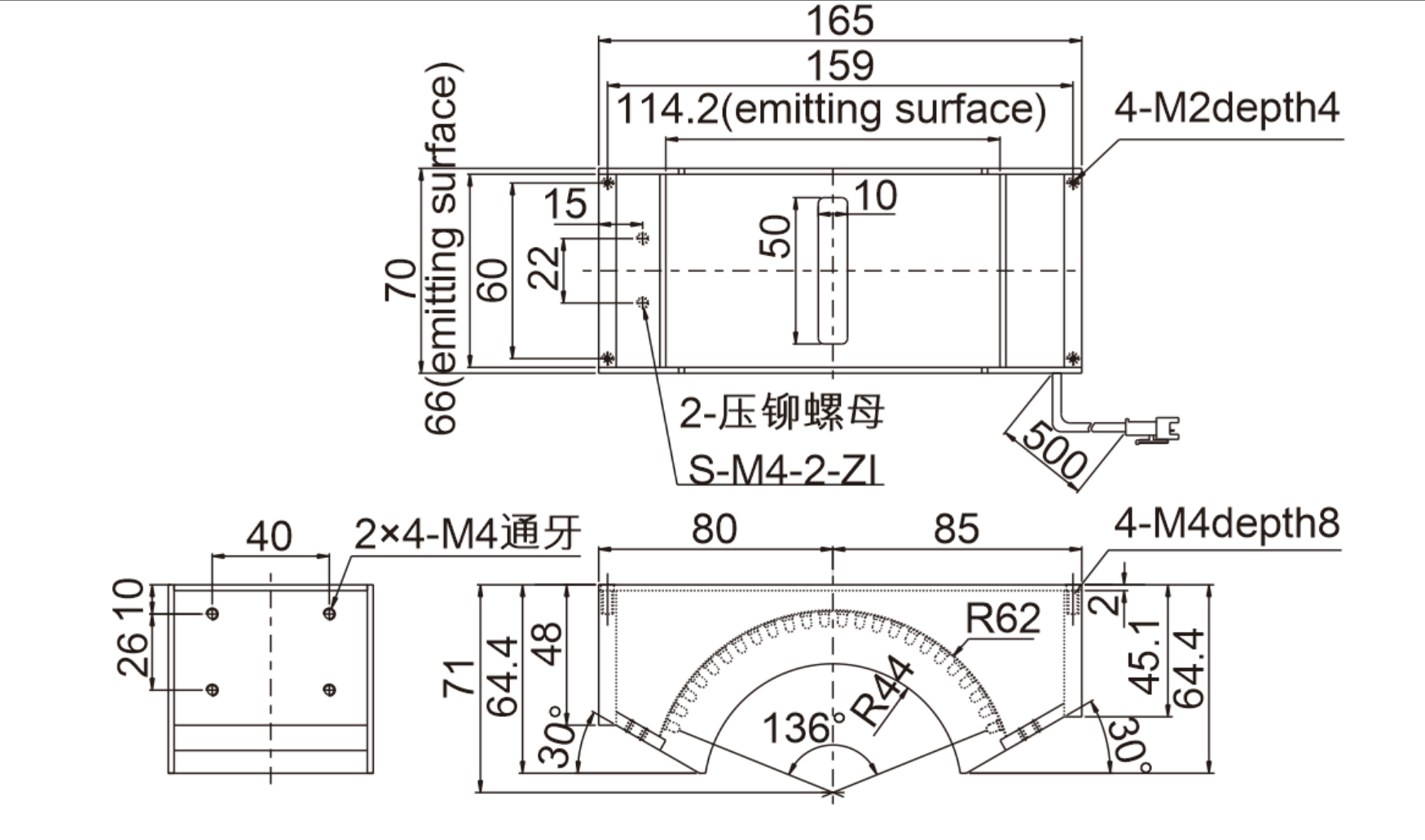 使用寿命 | 在本公司指定使用条件下,红光5万小时,白光3万小时,亮度降低到出厂值的50% |