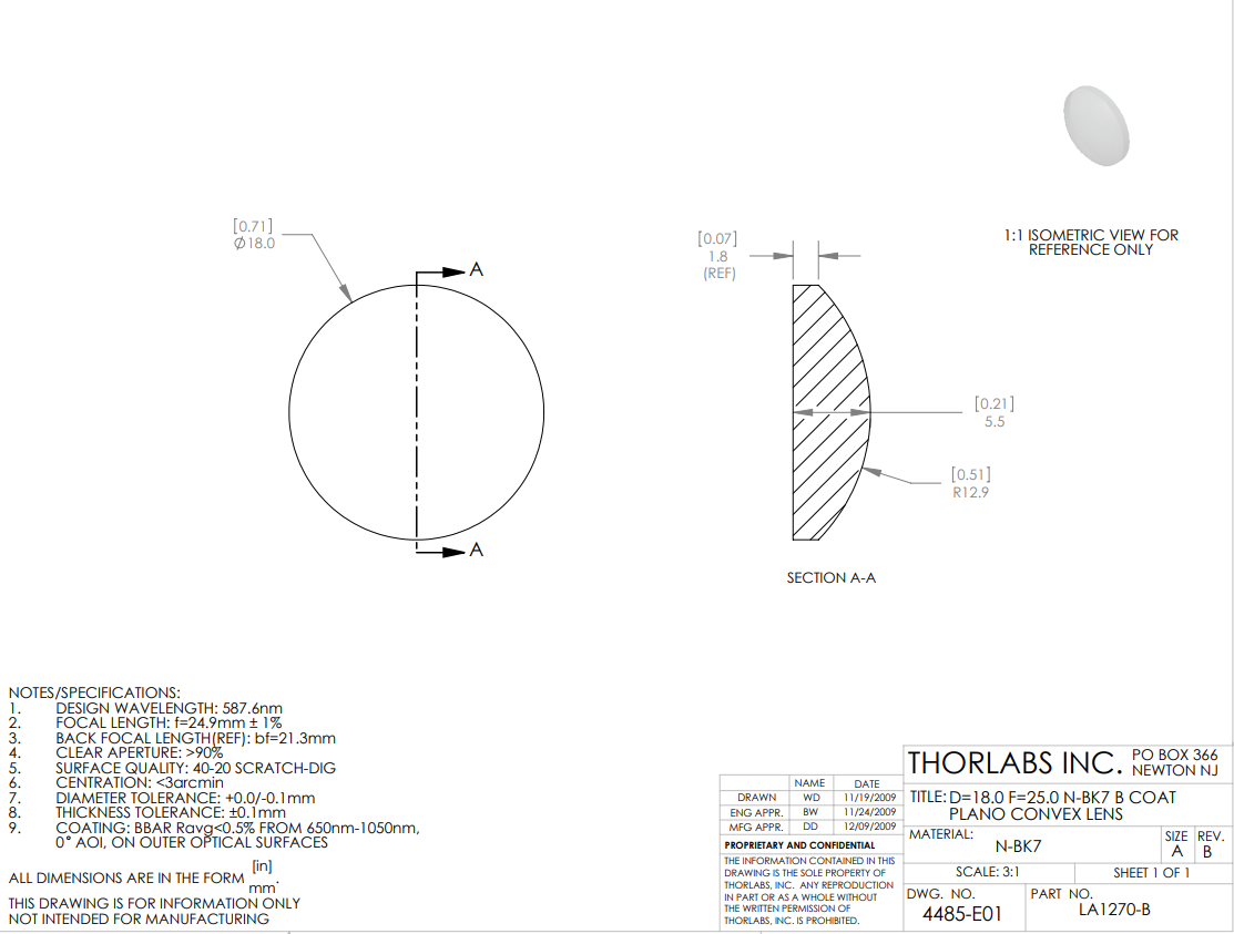 Table 1.1 N-BK7 Plano-Convex Lens Selection Guide |