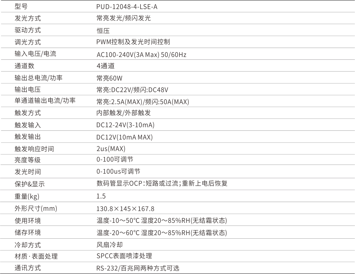 精准控制光源点亮时间,输出响应时间短频闪脉冲功率达2000W以上,满足超高亮度应用场景需求