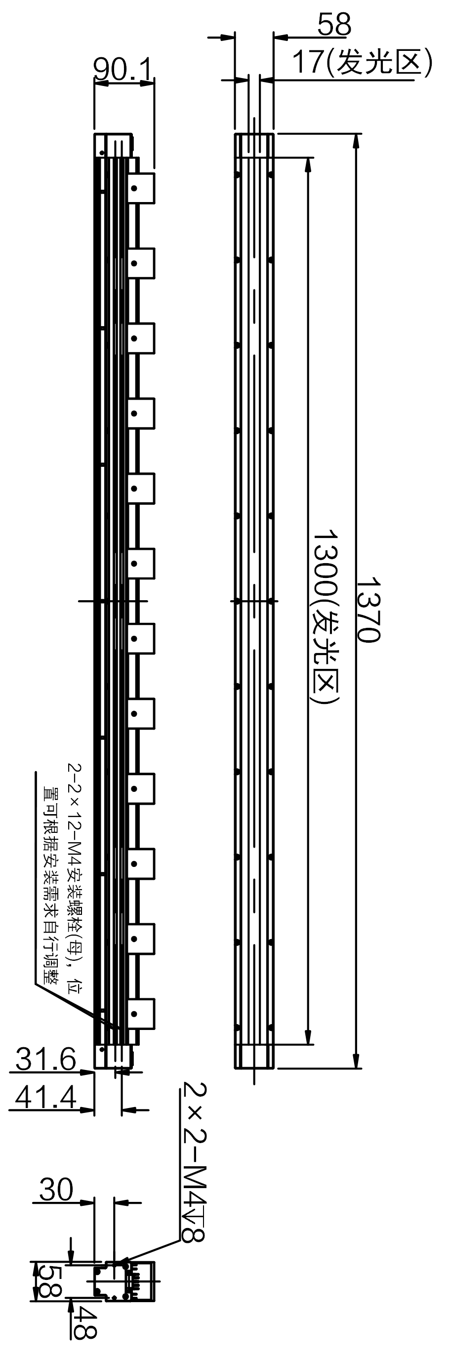 外形尺寸 | 1370 mm × 58 mm × 90.1 mm |