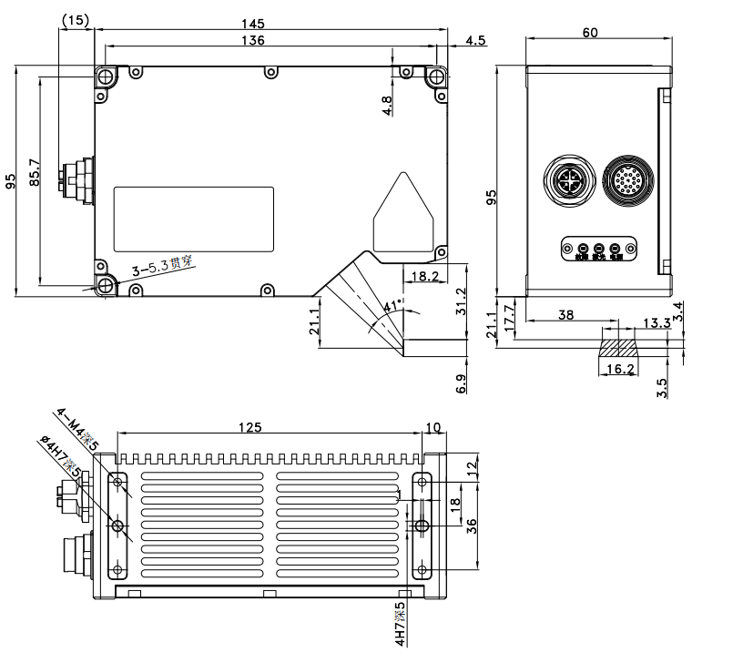 ● 内嵌航空插头,防灰尘吸入,防短暂雨水侵入;