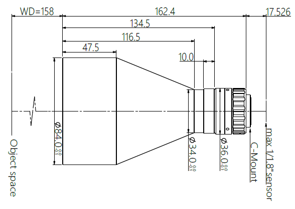 名称 | 158mm工作距,1/1.8",0.141x,不带同轴光接口 |