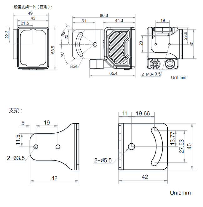 外形尺寸 | 平角:80.1 mm × 43 mm × 44.3 mm 直角:58.5 mm × 43 mm × 65.4 mm |