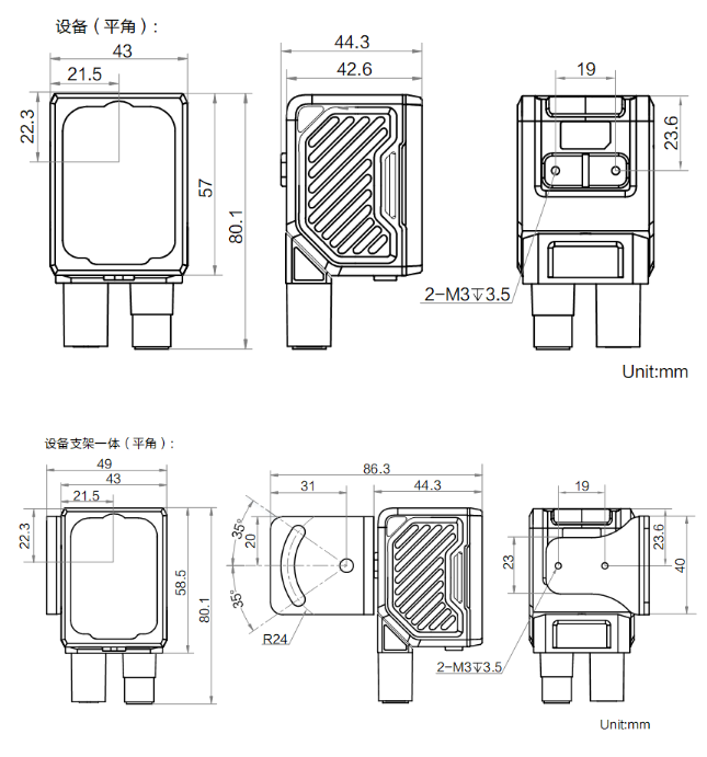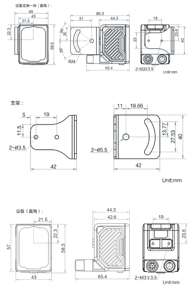 外形尺寸 | 平角:80.1 mm × 43 mm × 44.3 mm 直角:58.5 mm × 43 mm × 65.4 mm |