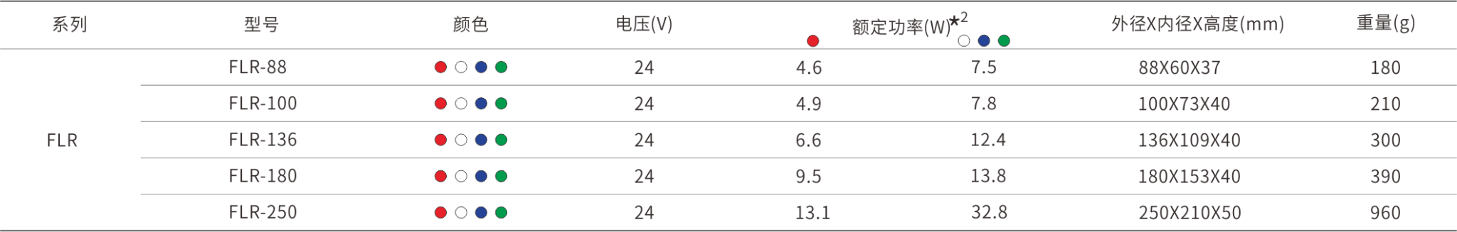 *2 实际产品功率与功率表内容相差±10%为正常范围