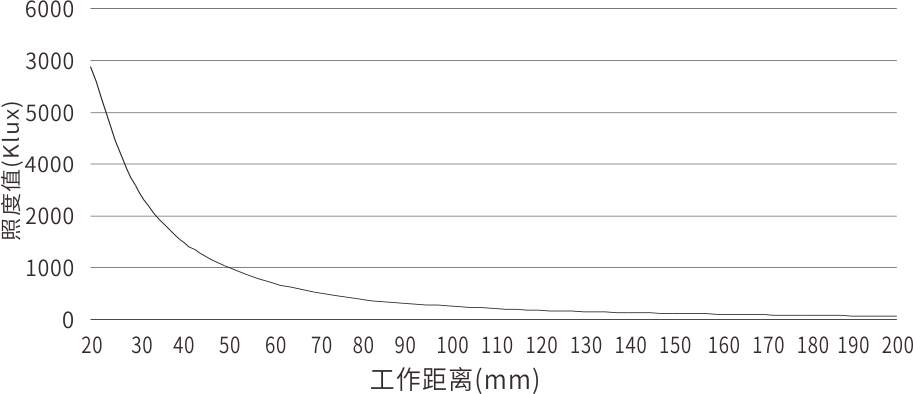 工作距离与照度曲线(代表例:PLF3-80W-1-E)