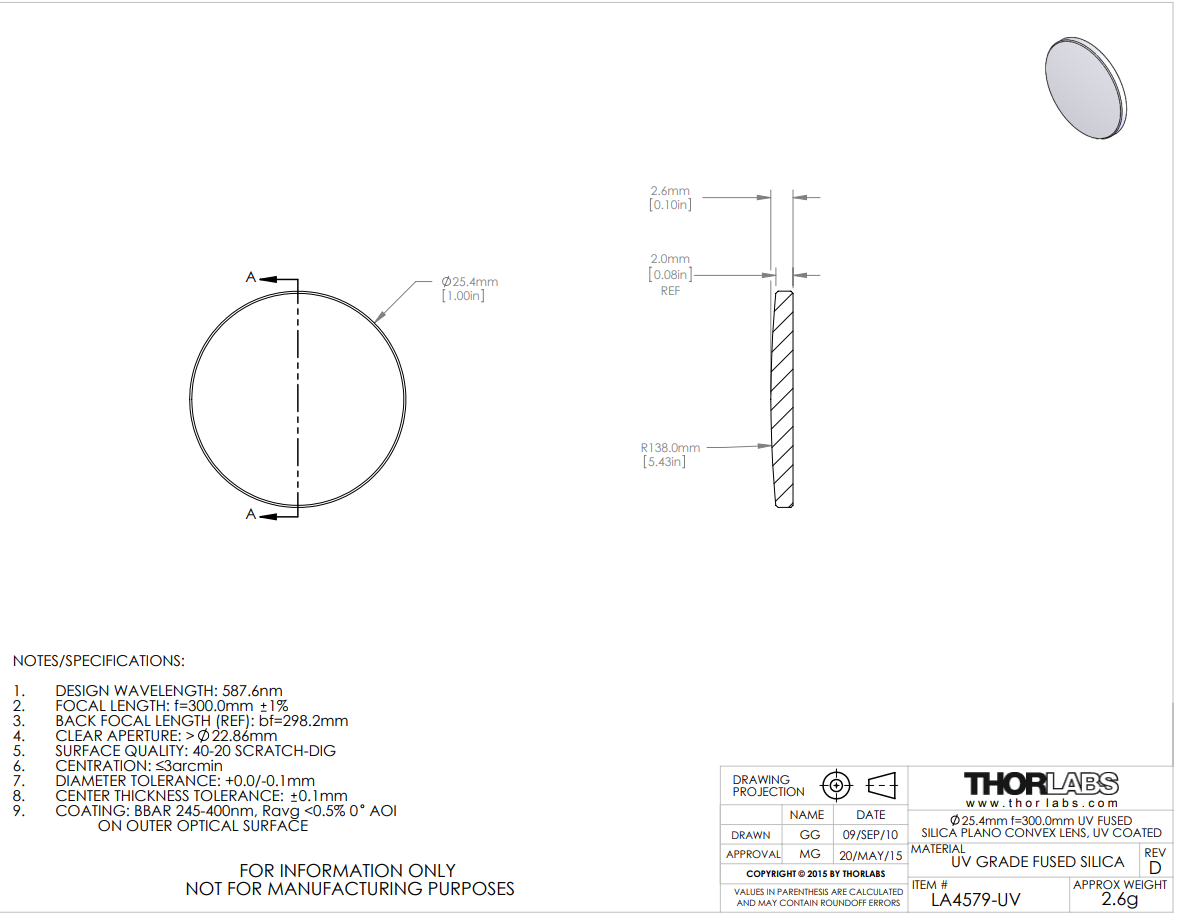Thorlabs索雷博 LA4579-UV 平凸透镜