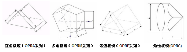 一般分为直角、多角、梯形、锥角和色散( 等边) 棱镜,主要用于分光或一些特殊用途。