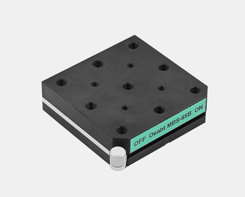 可在ON·OFF切换手柄的对面进行磁性固定,适用于单独固定在光学防震台,铝合金蜂窝型平台等(磁性材质的上板)上。不会受到螺纹孔的位置限制,可以固定在任意位置。