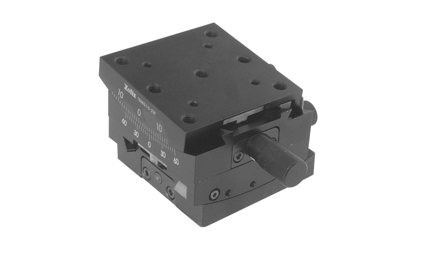 摆动台TSMG10-1W,TSMG10-2W 可使其上固定的光学器件旋转、倾斜调整。两台成对设计,结构紧凑可叠加,可单独使用。采用蜗轮副驱动,精密可靠。手轮锁紧定位和防脱。