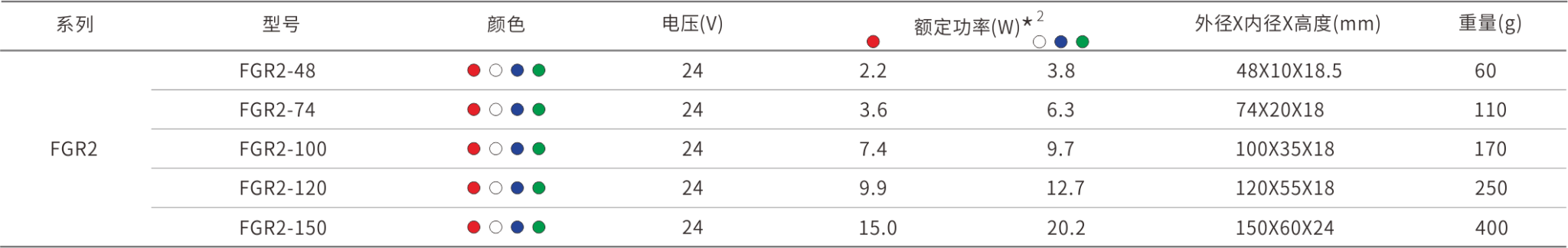 *2 实际产品功率与功率表内容相差±10%为正常范围
