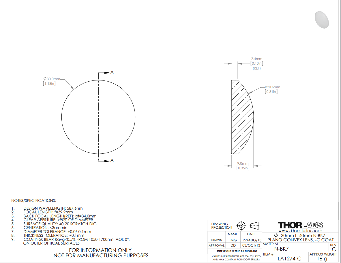 - LA1907-C、LA1541-C、LA1832-C、LA1419-C和LA1237-C透镜的设计波长为632.8纳米。