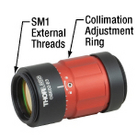 这些伽利略型光束扩束器具有螺纹输入孔径和输出孔径,方便沿着扩束器光轴安装其它透镜和滤光片。每种扩束器的输入端具有SM05(0.535"-40)内螺纹和SM1(1.035"-40)外螺纹,方便与Thorlabs的透镜套管和其它光学组件一起使用。2X扩束器的输出端还有SM1外螺纹。5X或10X扩束器具有M43 x 0.5外螺纹输出端口,可以通过SM2A30转接件集成SM2(2.035"-40)螺纹的元件。外壳设计使得在旋转准直调节环时安装表面和螺纹末端都不会旋转,所以用户在调节发散角时不会影响任何已经安装的光学元件,并维持指向稳定性。